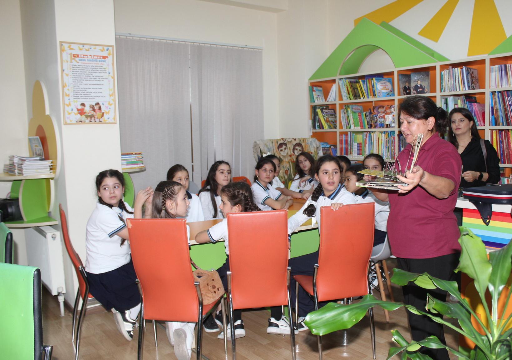 Məktəblilər kitabxanada maarifləndirici gün keçiriblər