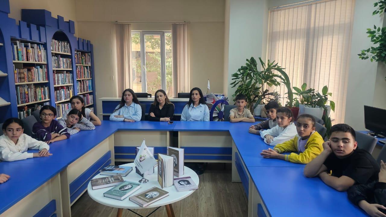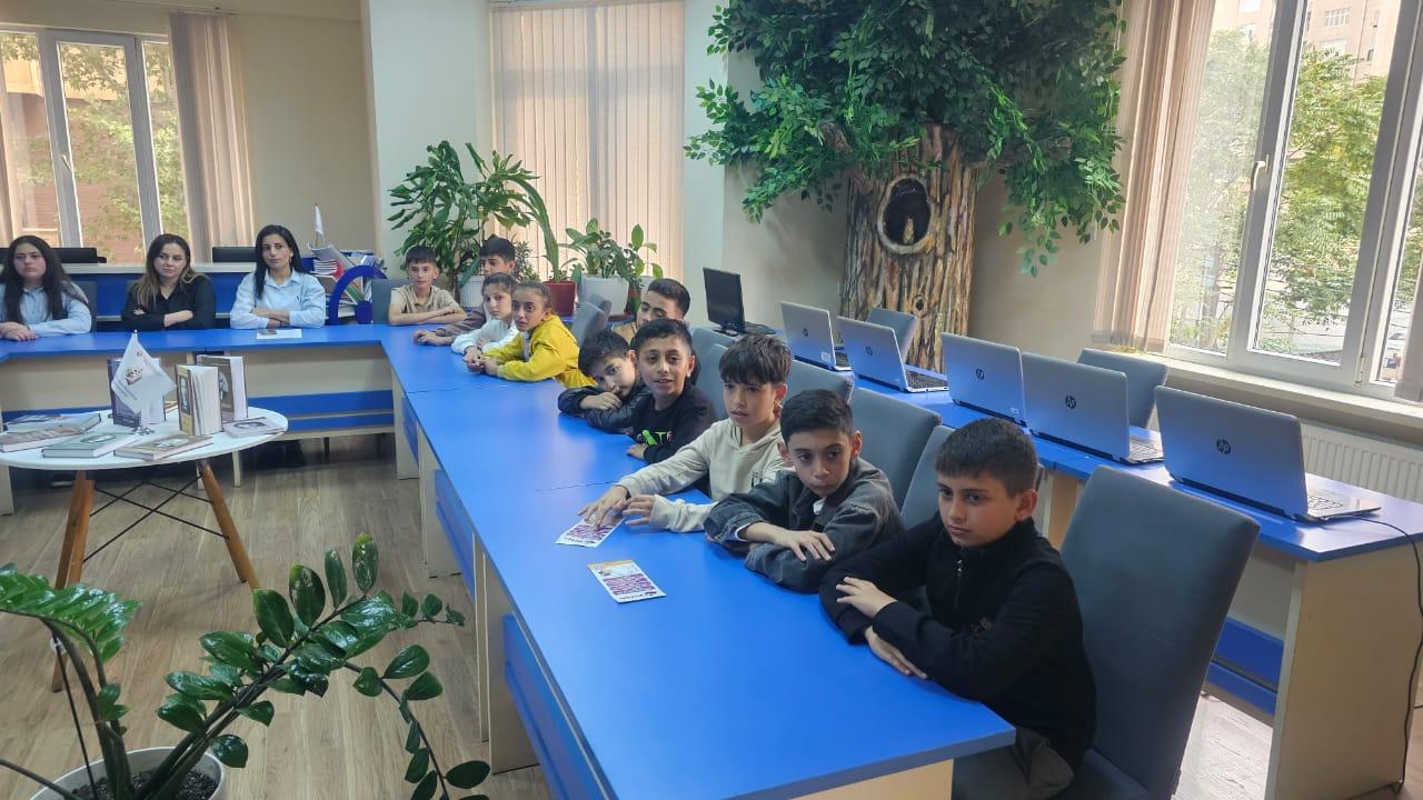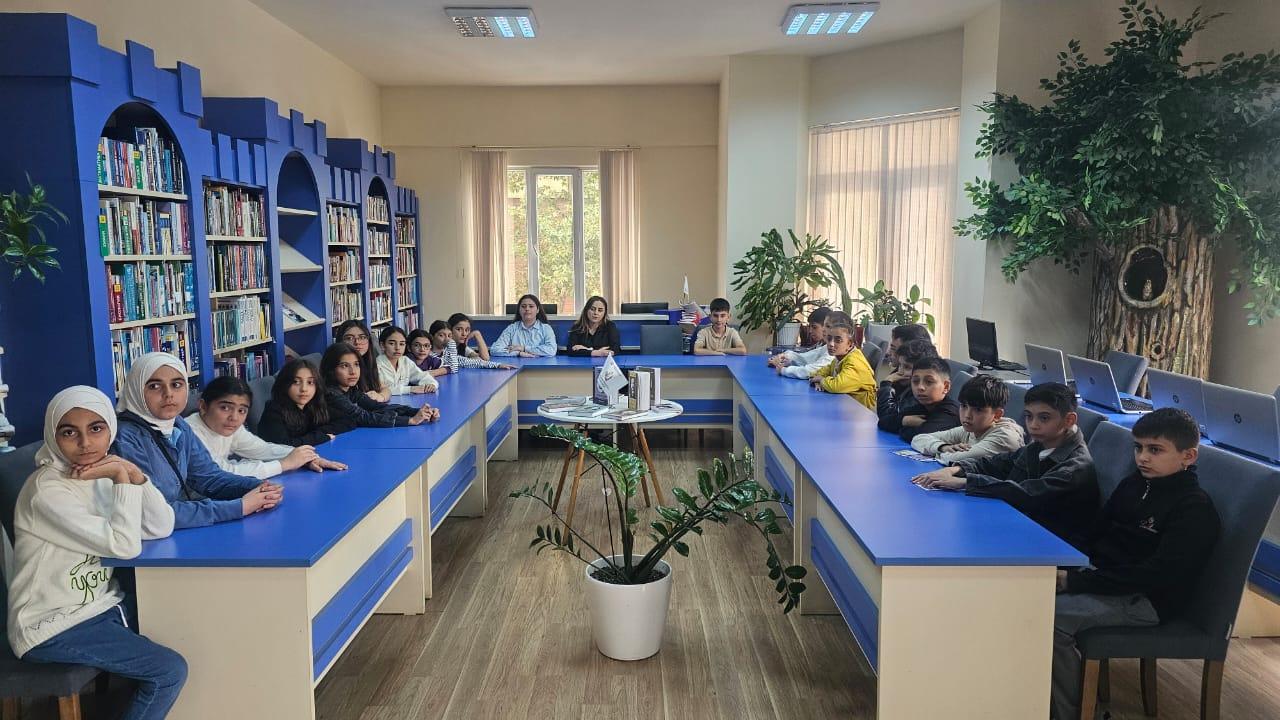 Görüş zamanı şagirdlər kitabxananın kitab fondu və elektron resurslarla tanış olublar.