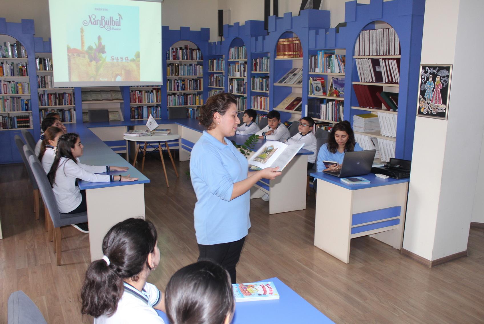 Məktəblilər kitabxanada maarifləndirici gün keçiriblər