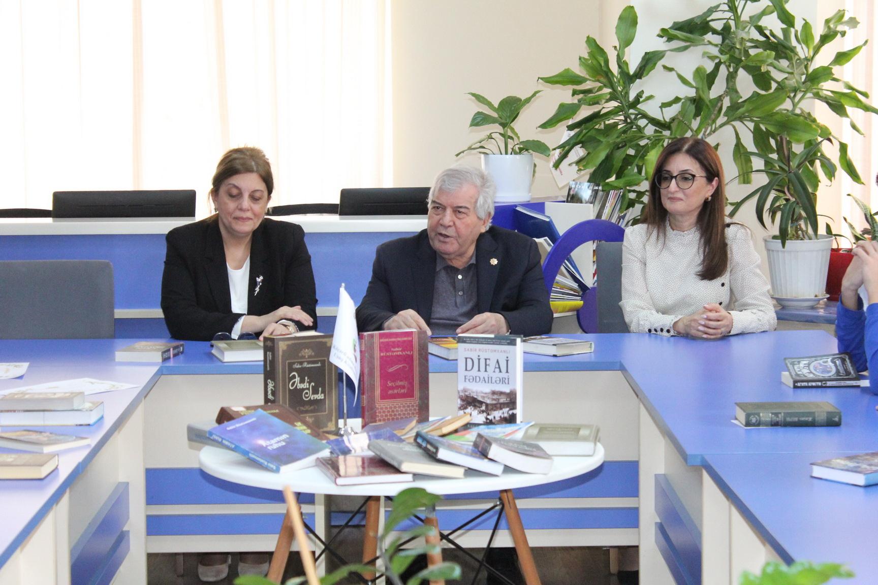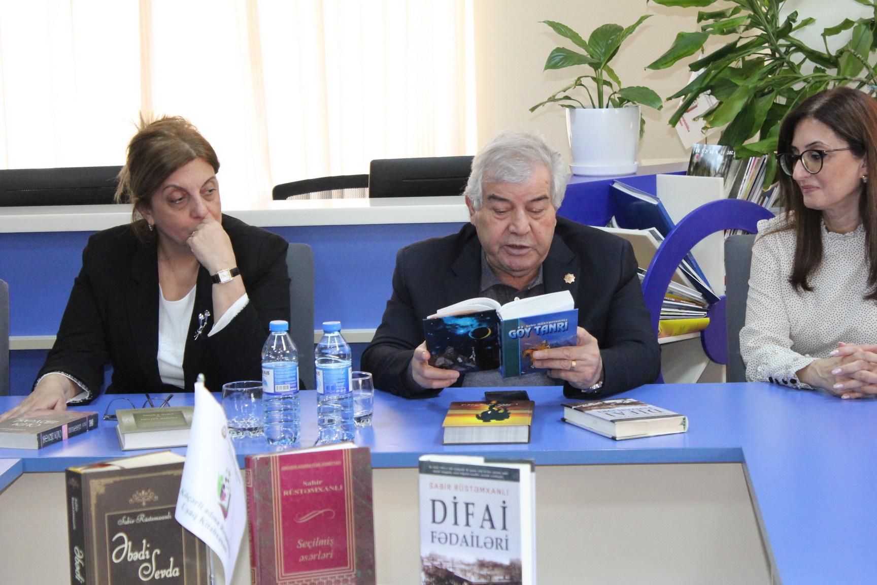 23 Aprel tarixində F.Köçərli adına Respublika Uşaq Kitabxanasında növbəti “Müəllif saatı” təşkil olunub. Layihə çərçivəsində Azərbaycanın görkəmli ictimai-siyasi xadimi, xalq şairi Sabir Rüstəmxanlı ilə XXI Əsr Beynəlxalq Təhsil və İnnovasiya Mərkəzinin 7-ci sinif şagirdlərinin görüşü keçirilib. Tədbiri giriş sözü ilə açan kitabxananın direktoru Şəhla Qəmbərova qonaqları salamlayaraq, Sabir Rüstəmxanlının Azərbaycan ədəbiyyatındakı xüsusi mövqeyindən bəhs edib. Sabir Rüstəmxanlı öz növbəsində kitabxananın fəaliyyətini yüksək qiymətləndirərək, burada yaradılan mühitdən məmnunluğunu ifadə edib. Şair qeyd edib ki, kitabla dostluq edən gənclik Azərbaycanın parlaq gələcəyinin təminatıdır. Şagirdlər şairin həyat yolu, yaradıcılığı və əsərlərinin yaranma tarixi ilə bağlı suallar ünvanlayıblar. Sabir Rüstəmxanlı sualları cavablandırarkən tarixi romanlarından bəhs edib və bu əsərlərin əhəmiyyətini gənclərin diqqətinə çatdırıb. “Göy Tanrı”, “Difai fədailəri” , “Ölüm zirvəsi” kitablarında bəhs edərək bizim tariximiz qəhrəmanlıqlarla dolu olduğunu vurğulayıb. “Göy Tanrı” ilə köklərimizi, “Difai fədailəri” ilə milli müqavimət ruhumuzu, “Ölüm zirvəsi” ilə isə fədakarlığımızı dərk etməliyik.